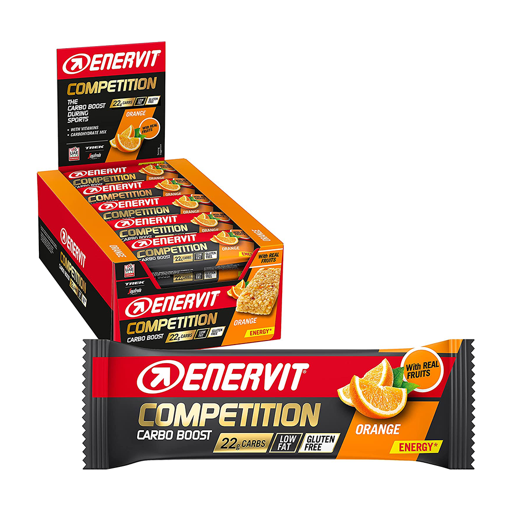 Se vuoi dare il massimo, tu devi spingere. Non hai scuse. Ma un prodotto in grado di aiutarti, sì. Enervit Competition Bar all’Arancia è la barretta energetica che ti fornisce un vero carbo-boost per i tuoi allenamenti più impegnativi e durante le competizioni. Grazie alla sua formula altamente tecnica, ti assicura il giusto sostegno nei momenti più difficili del percorso. Abbinala ad altri prodotti della linea Enervit Sport per costruire il tuo Enervit Nutrition System.